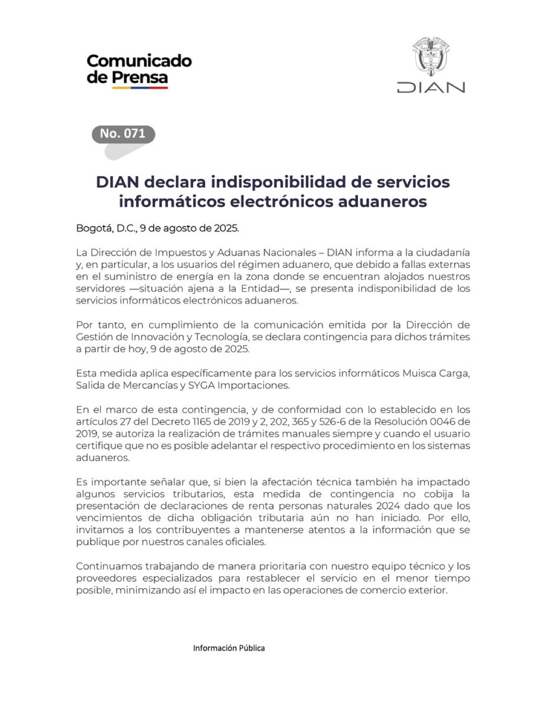 Ver comunicado de la Dian