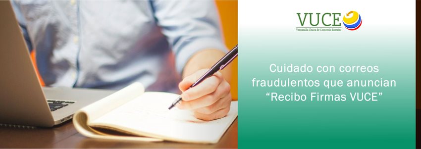 El Ministerio de Comercio, Industria y Turismo alerta a la ciudadanía y, en especial, a los servidores públicos de las entidades del Sector, así como a los usuarios del mismo, sobre una serie de correos fraudulentos que con el anuncio de “Recibo Firmas VUCE”, están circulando y, cuyos enlaces, de ser abiertos, constituirían un grave peligro para el robo y/o manipulación tanto de la información institucional como personal.
